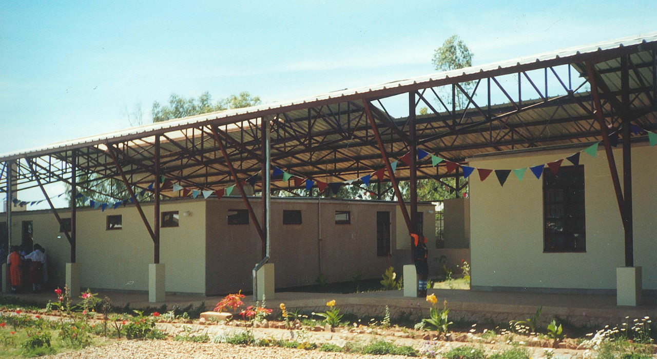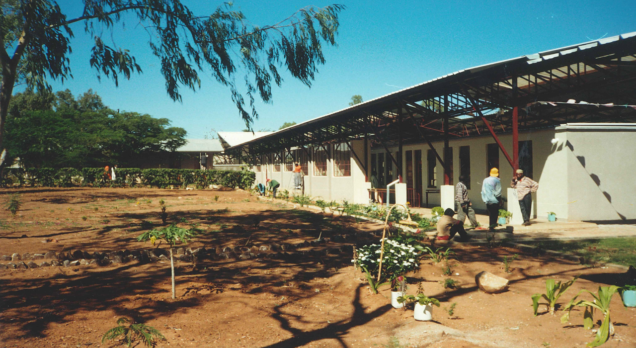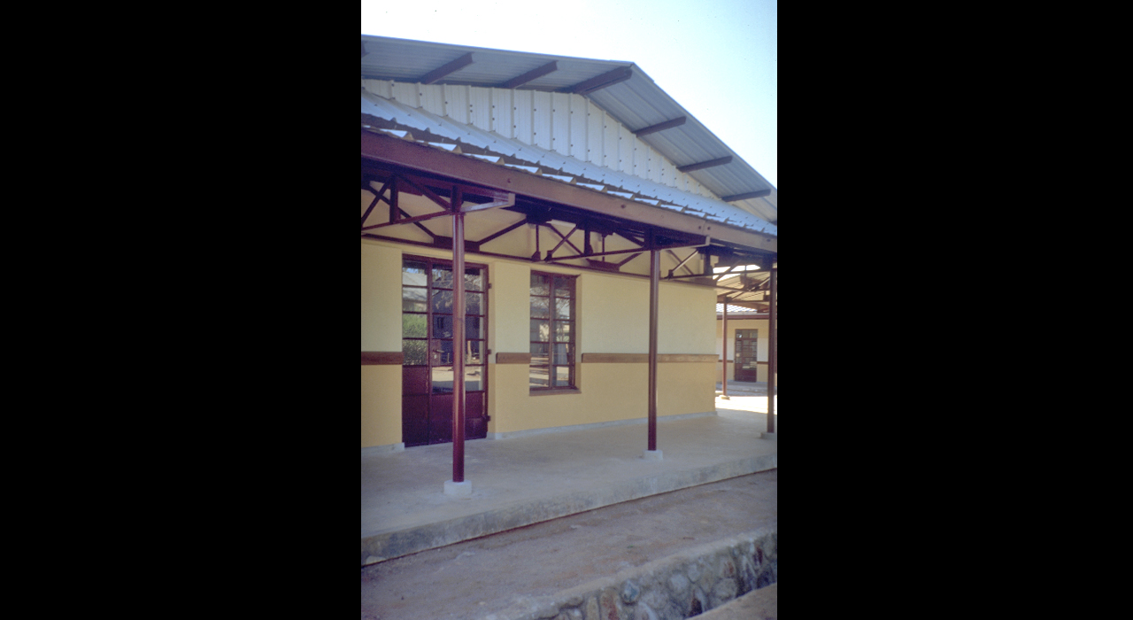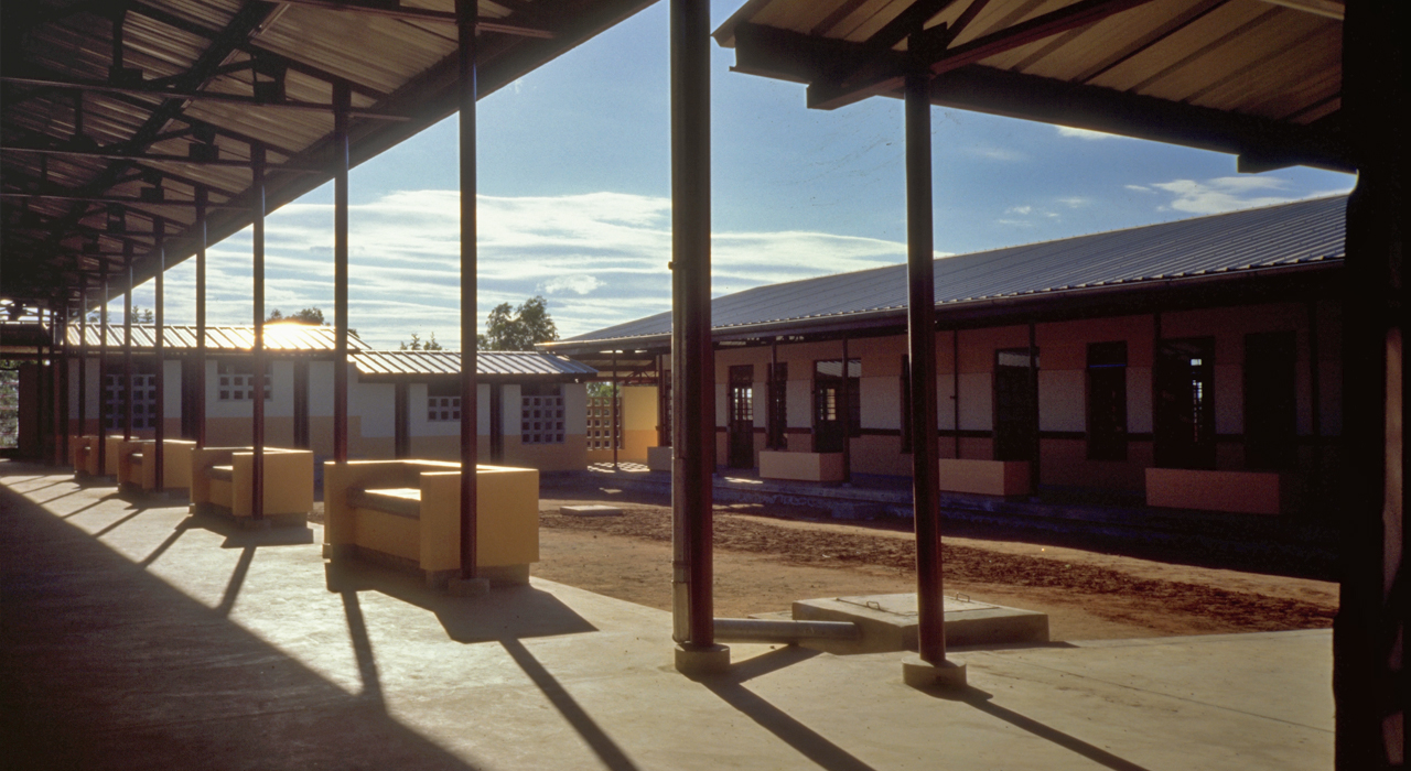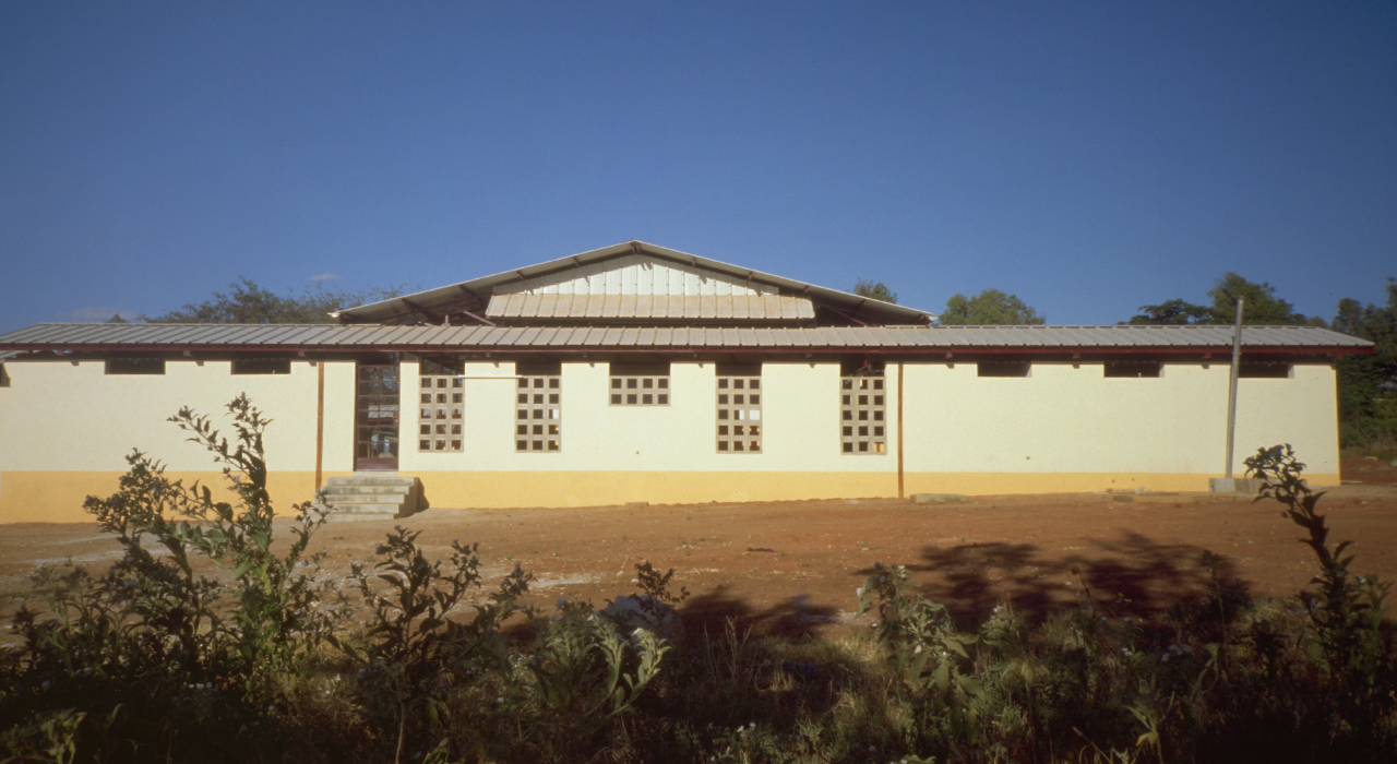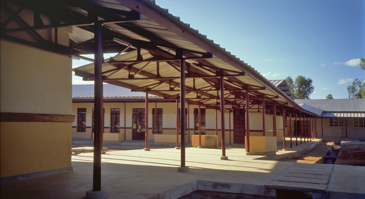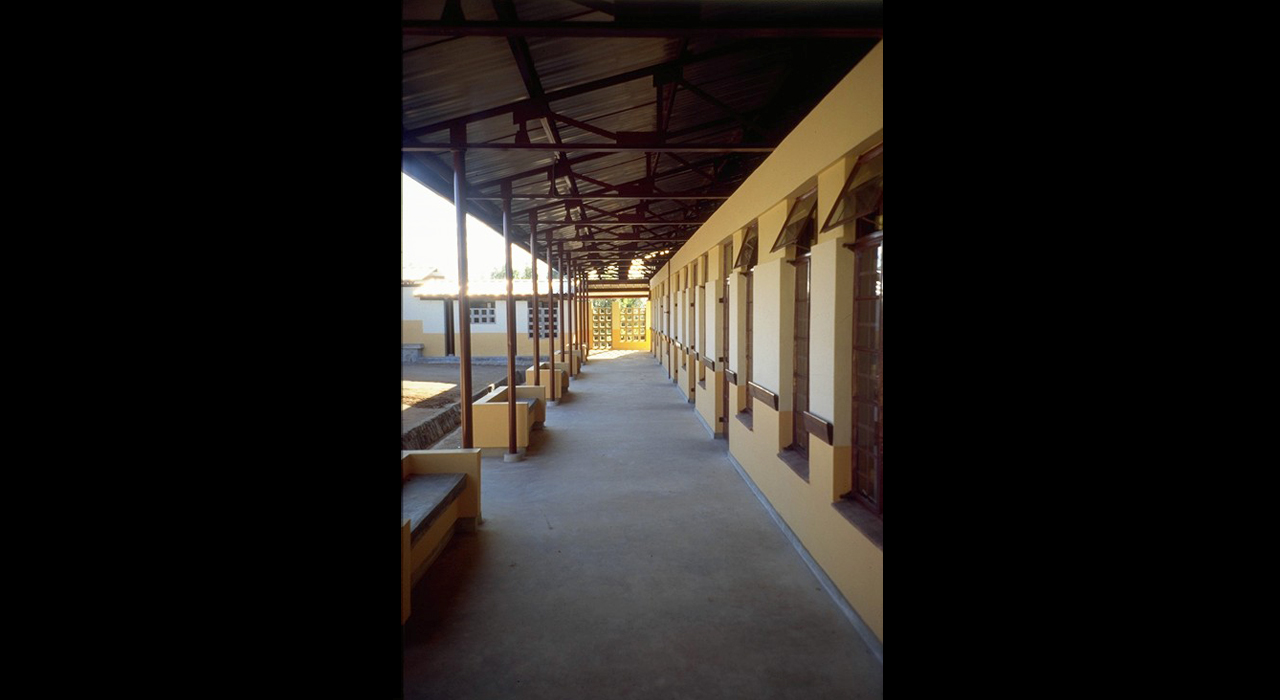 By the early 1990s, the existing health centre at Mtinko had become far too small to respond to the needs of the fast growing population. Therefore a masterplan was developed, that provided for a staged  20-years perspective growth into a 150-bed hospital.  The existing buildings were rehabilitated and integrated into a fairly conventional pavilion-type hospital with covered connecting walkways. The out-patient services and clinics are redeveloped under a huge flying roof that covers buildings, reception area, waiting areas and circulation in one gesture.