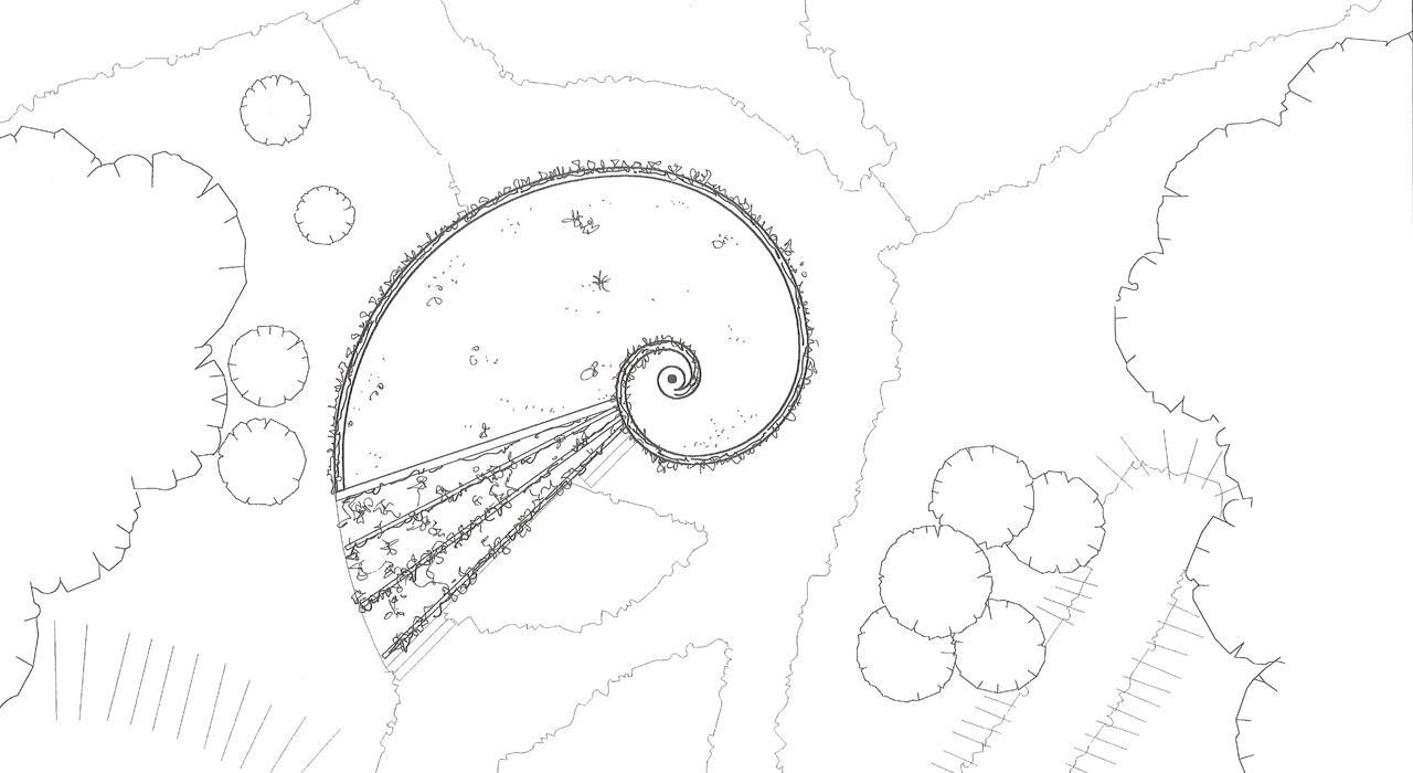 FBW designed a lightweight building in the shape of a snail shell (Nautilus shell), with a timber structure from the inside and the outside cladded with corrugated sheets. In the opening of the shell, a glazed folding wall was placed which can be protected by a steel roll-down shutter. The basic shape of the shell exists of segments of a quarter of a circle that reduce in size according to the rules of the golden ratio.